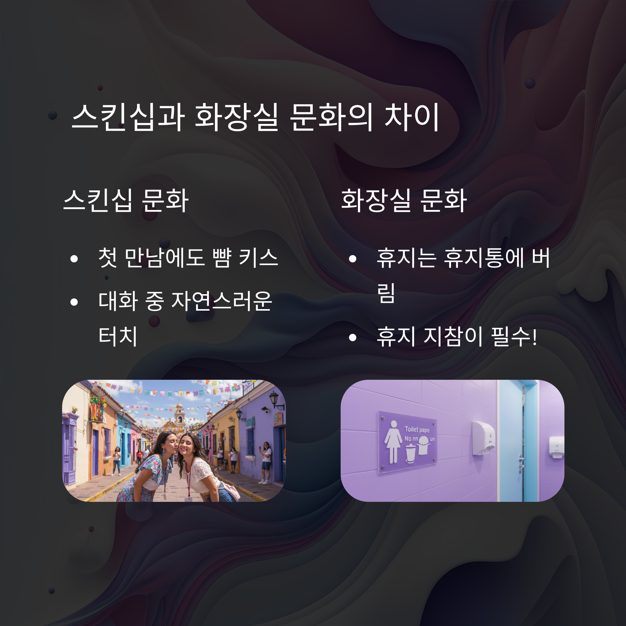 여행 전에 이런 문화적 차이를 알고 가시면 당황스러운 상황을 줄일 수 있을 거예요!