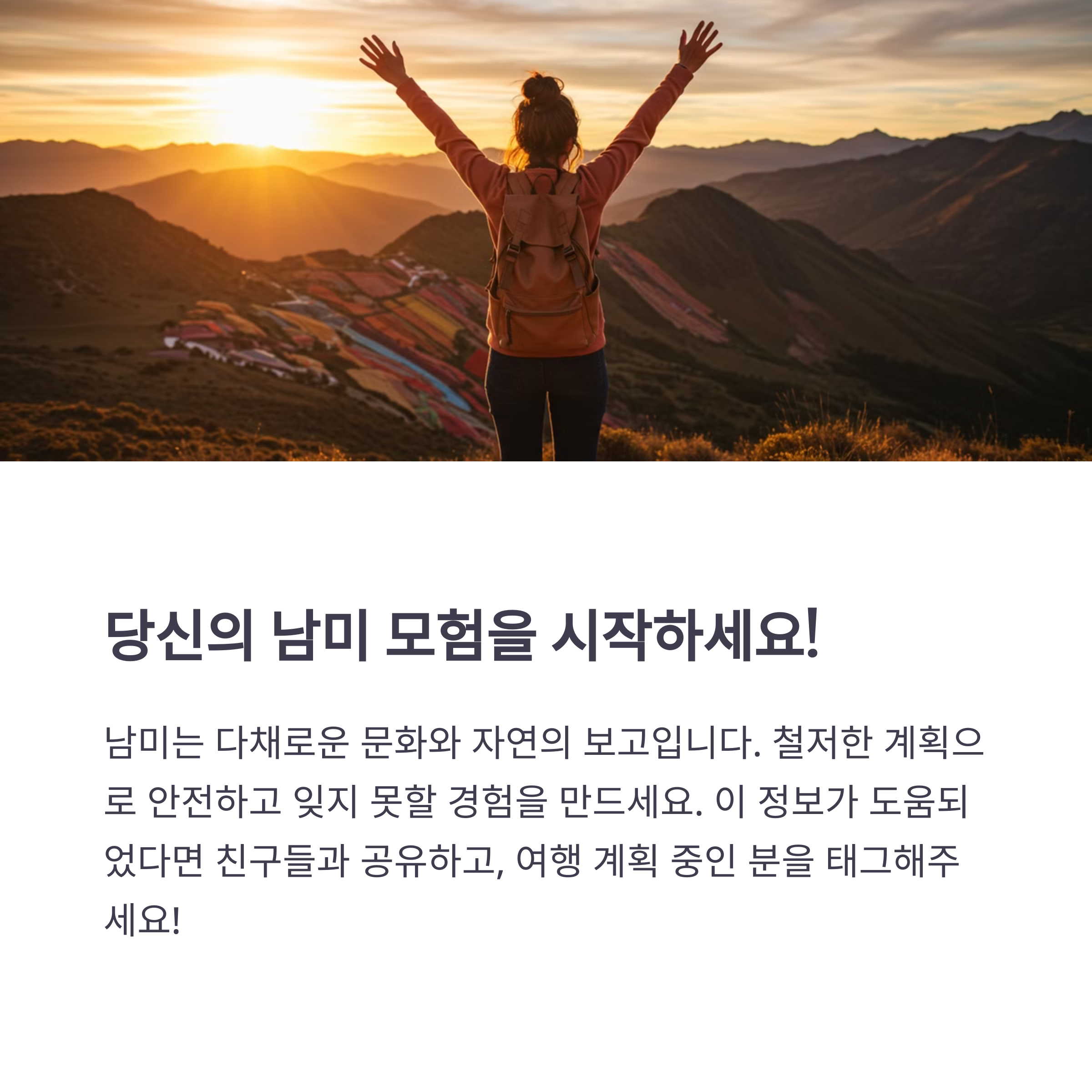 여행 전 철저한 준비와 계획으로 안전하고 즐거운 남미의 매력을 마음껏 느껴보세요!