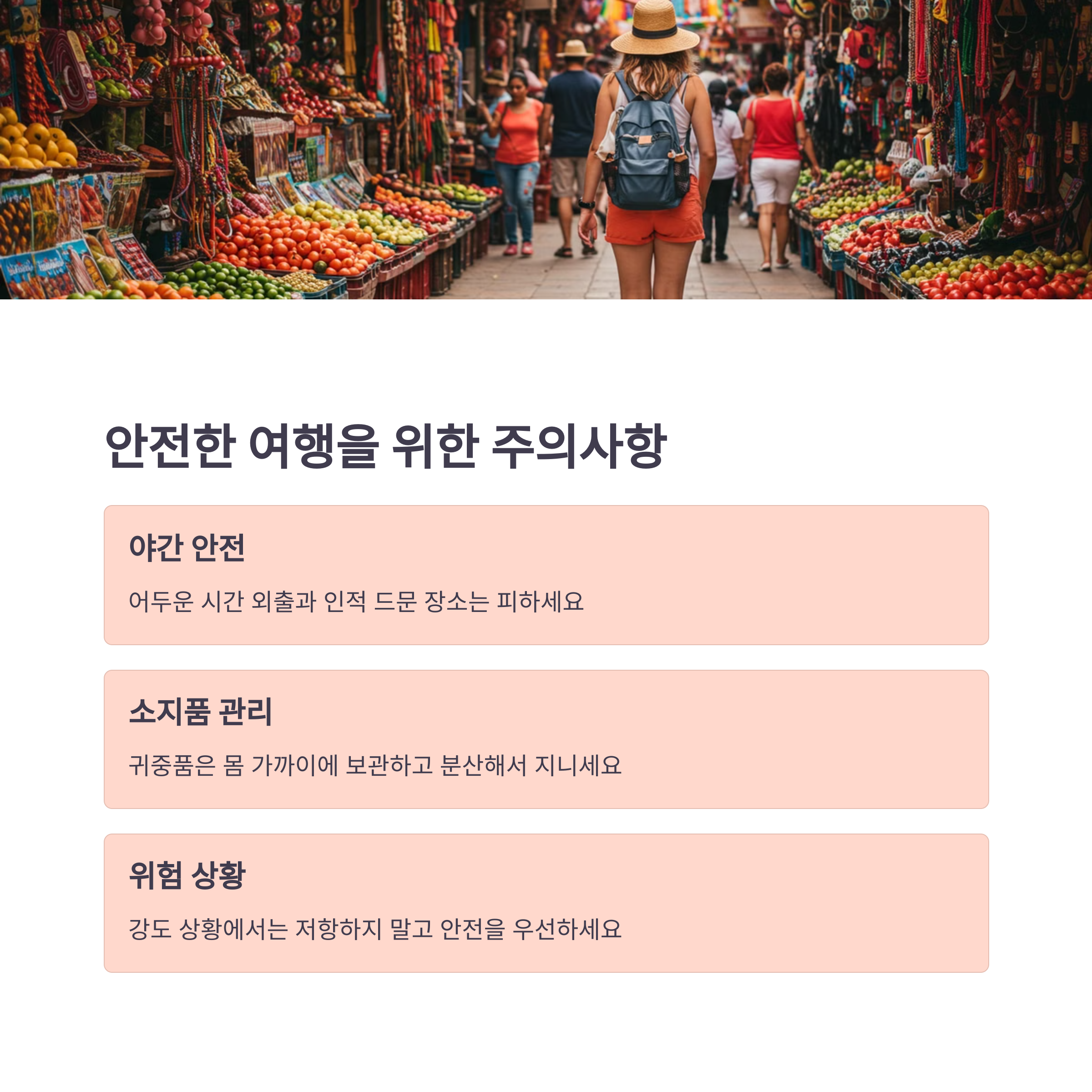 🔒 안전에 항상 주의하고, 귀중품은 호텔 금고에 보관하는 것이 좋습니다.