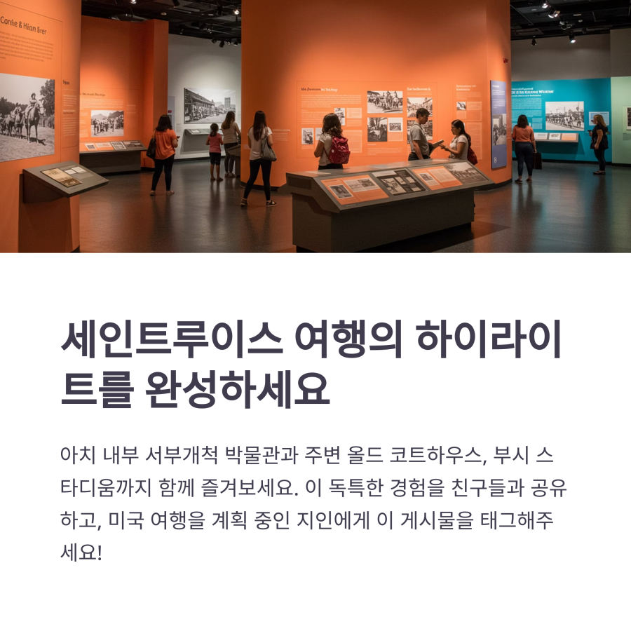 미국 중서부의 관문, 게이트웨이아치는 세인트루이스를 방문한다면 절대 놓치면 안 되는 랜드마크입니다. 웅장한 아치형 구조물과 그 위에서 바라보는 도시 전경은 미국 여행의 하이라이트가 될 거예요. 특히 사전 예약만 잘 해둔다면 훨씬 더 여유롭고 즐거운 경험이 가능합니다. 여러분의 미국 여행이 즐겁고 안전하길 바랍니다! 다음에는 세인트루이스의 숨은 맛집들에 대해 알려드릴게요. 감사합니다!