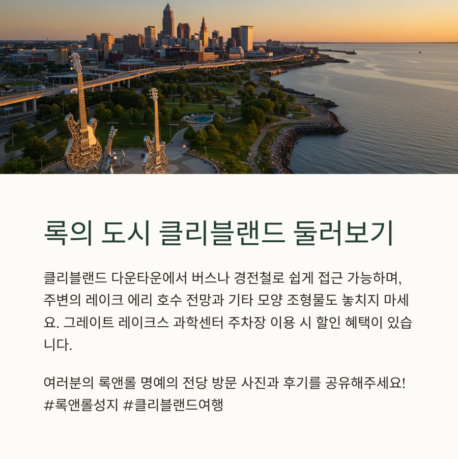 안녕하세요, 여러분! 오늘은 음악 역사의 성지 중 하나인 클리블랜드 록앤롤 명예의전당에 대한 중요한 정보를 가져왔어요. 미국 여행 계획 중이신가요? 특히 오하이오 클리블랜드를 방문하실 예정이라면 이 글을 꼭 읽어보세요.