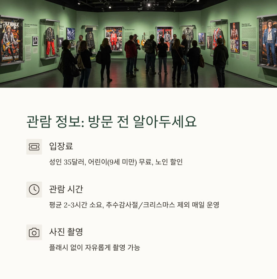 록앤롤 명예의전당 입장료는 성인 기준 약 30-35달러 정도인데요, 추가 비용을 지불하면 VIP 투어나 특별 액세스도 가능합니다.