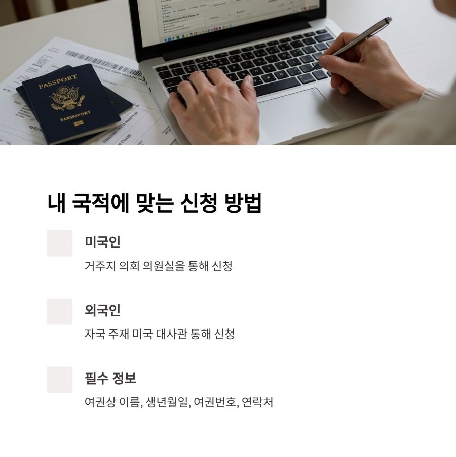 백악관 투어를 신청할 때는 여행자 모두의 개인 정보가 필요합니다. 여권 정보와 일치하는 정확한 정보를 제공해야 하니 꼼꼼히 확인하세요.