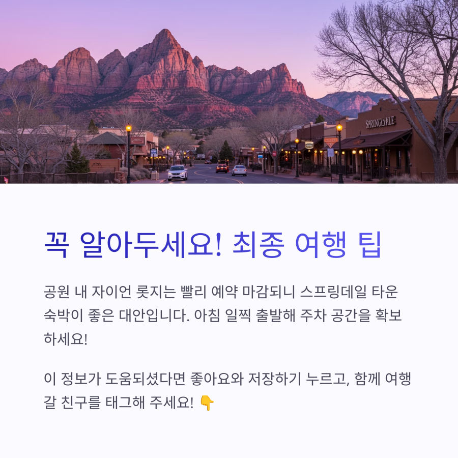 자이언 캐니언 국립공원은 미국 내 가장 인상적인 자연 명소 중 하나이지만, 철저한 사전 계획 없이는 그 아름다움을 제대로 경험하기 어려워요. 이 글에서 알려드린 예약 팁을 활용해 완벽한 여행을 준비하시길 바랍니다.