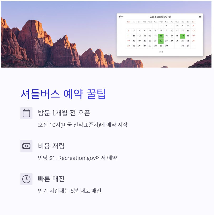 많은 여행자들이 놓치는 부분인데, 자이언 캐니언은 단순히 입장만으로 끝나지 않아요. 공원 내 셔틀버스 탑승부터 인기 트레일 입장까지 별도의 예약이 필요한 경우가 많죠.