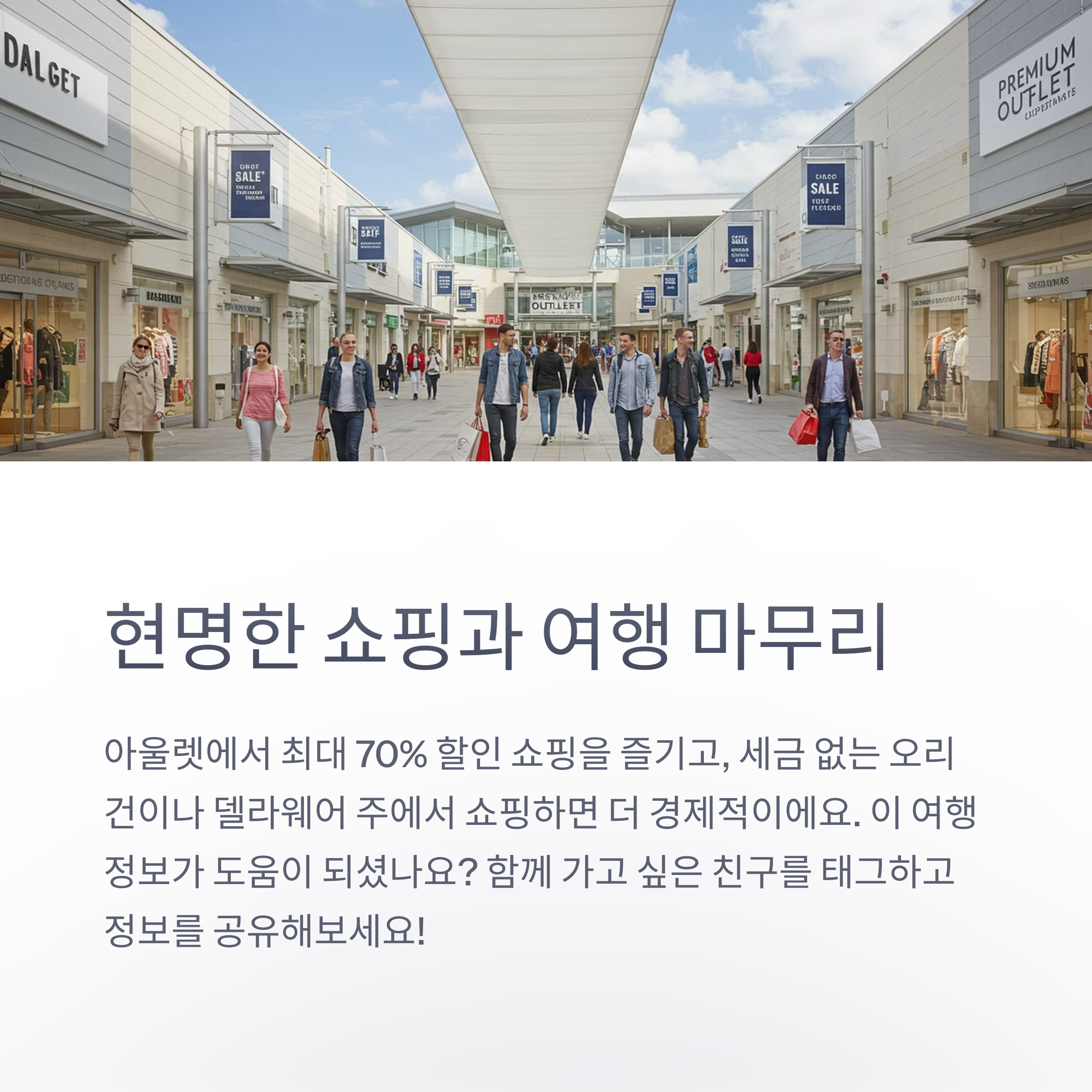 쇼핑도 북미 여행의 즐거움 중 하나죠! 아울렛 쇼핑몰에서는 유명 브랜드 제품을 할인된 가격에 구매할 수 있어요.