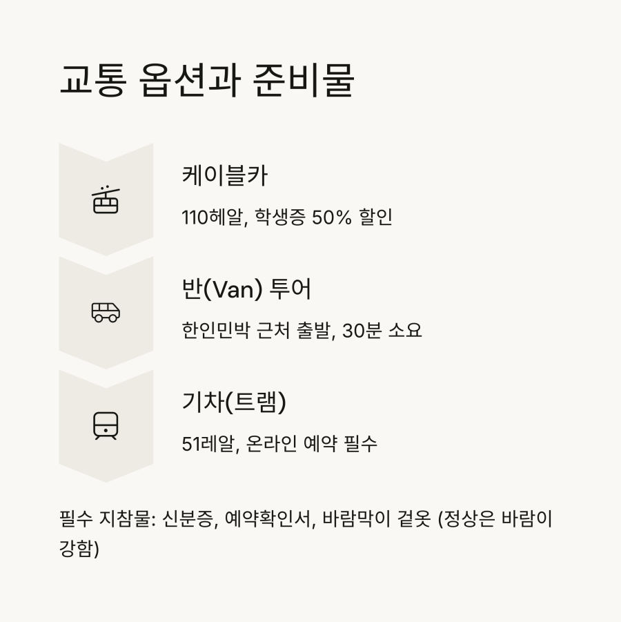 케이블카 탑승 전에 신분증과 예약 확인서를 반드시 지참하세요. 현장에서 확인합니다.