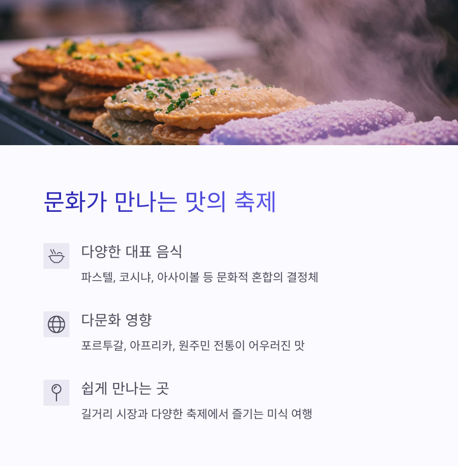 관광지마다 즐비하게 늘어선 음식 노점상들은 현지인들의 일상적인 식문화를 엿볼 수 있는 최고의 창구였답니다.