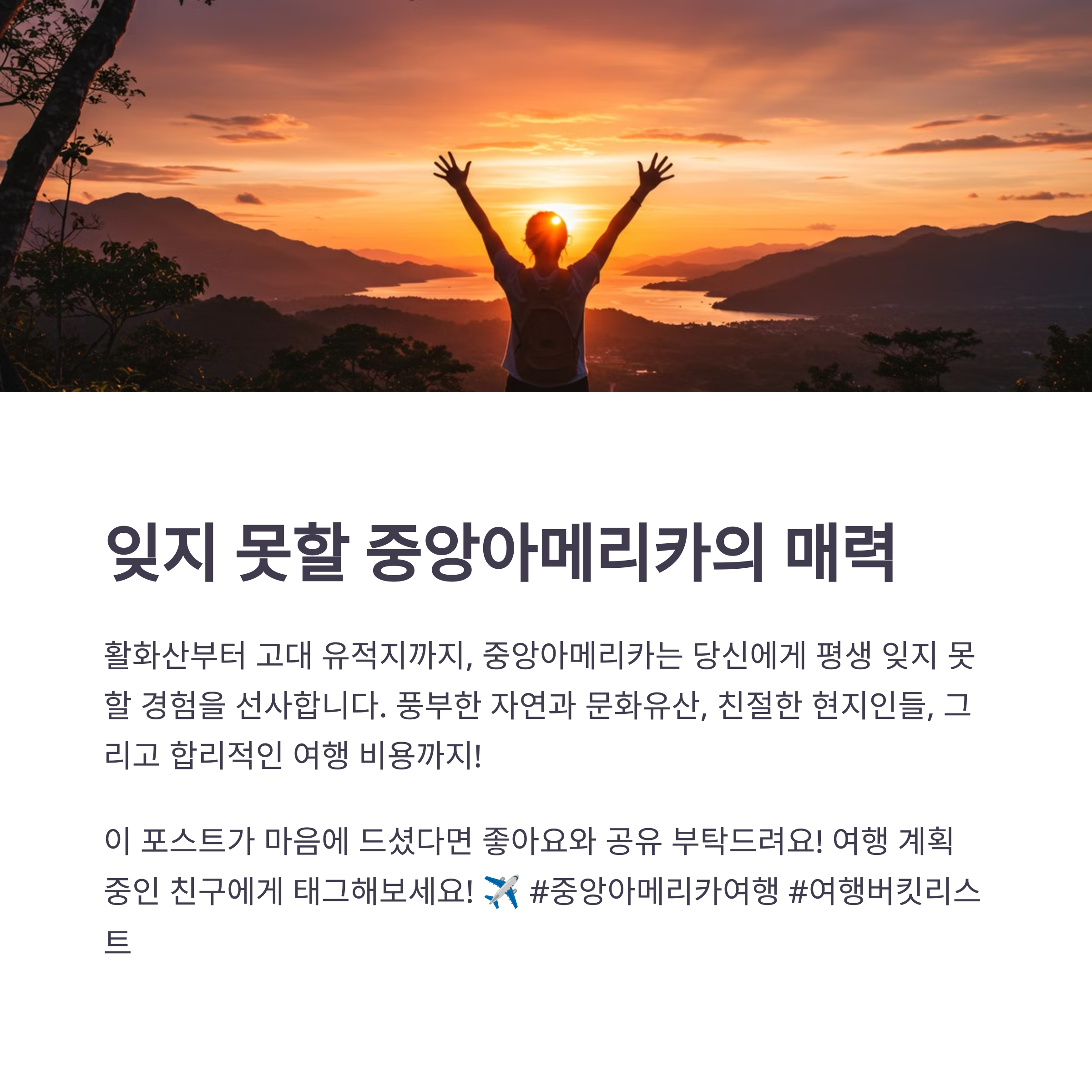 진정한 여행의 가치는 새로운 문화를 이해하고 존중하는 데 있다고 생각해요. 중앙아메리카는 그런 의미에서 최고의 여행지가 아닐까요? ✨