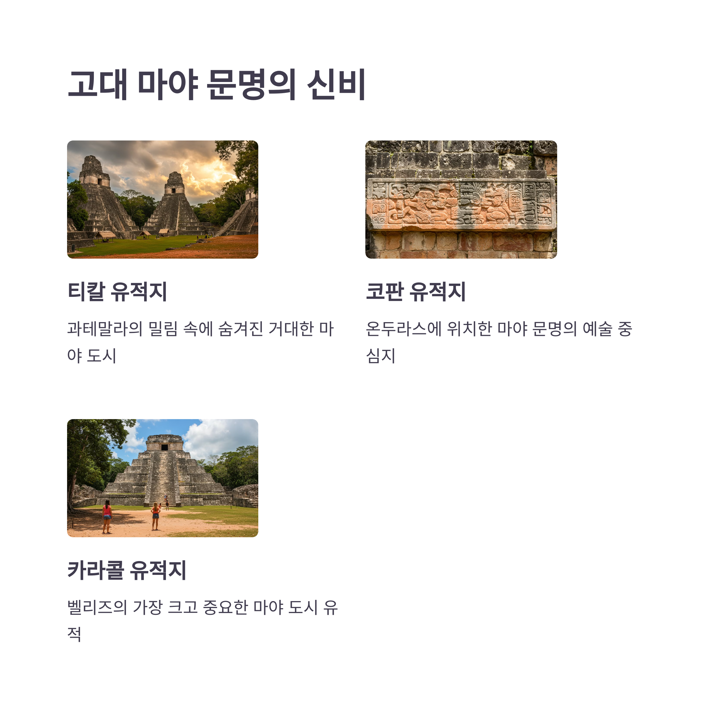 중앙아메리카는 고대 마야 문명의 흔적이 곳곳에 남아있는 역사적인 보고예요! 📜