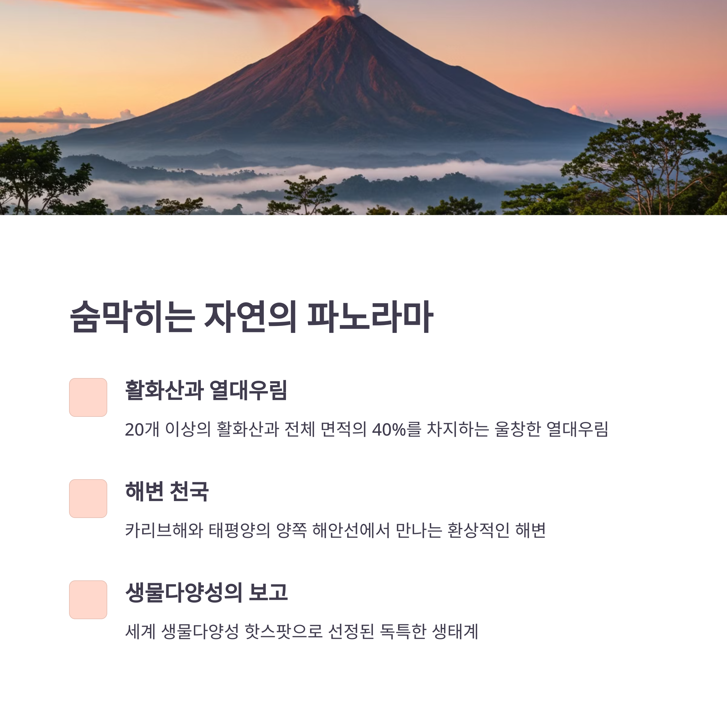 중앙아메리카의 가장 큰 매력 중 하나는 바로 다채로운 자연환경이에요! 🌿