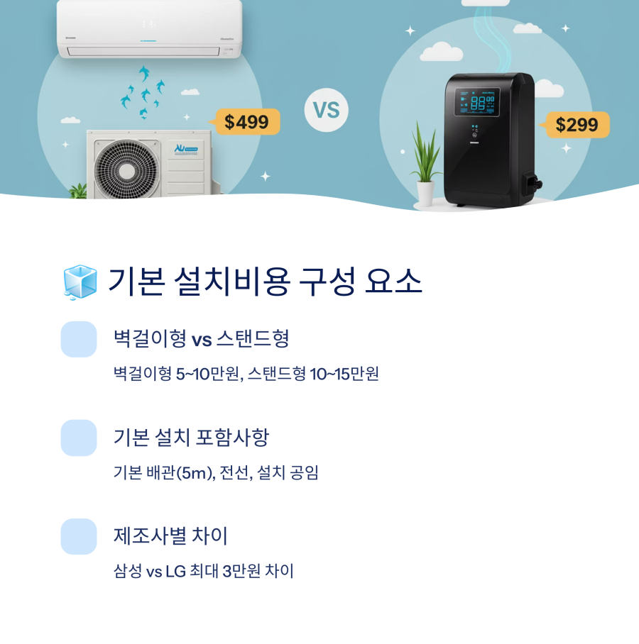 | 기본 설치비 | 벽걸이형 | 5~10만원 | 브랜드별 상이 |