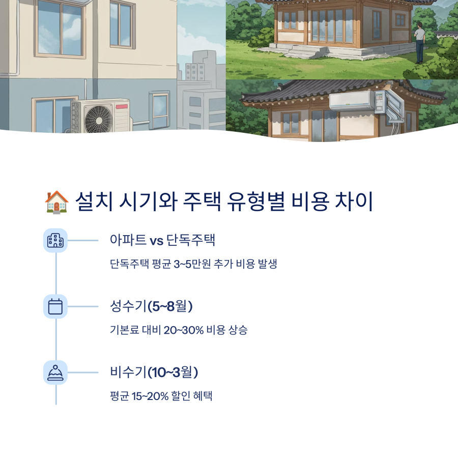 사실 같은 에어컨이라도 설치하는 주택의 유형에 따라 비용이 크게 달라질 수 있어요. 아파트, 빌라, 단독주택 등 주거 형태별로 설치 난이도와 공사 범위가 다르기 때문이죠.