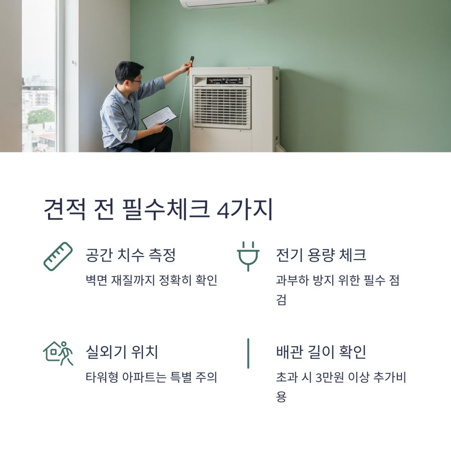 기존 전기 설비로 에어컨 가동이 가능한지 미리 점검받아야 해요.