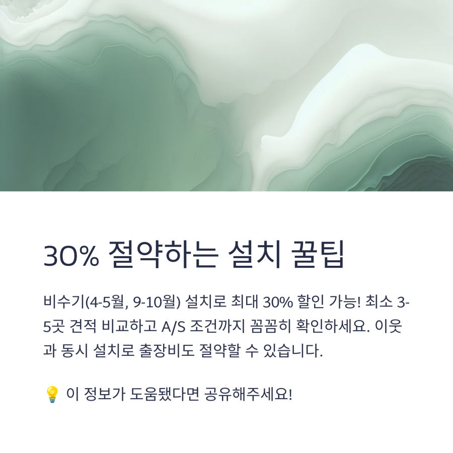 단순히 가격만 비교하지 말고 **A/S 보장 기간**과 **설치 품질**도 함께 고려하세요.