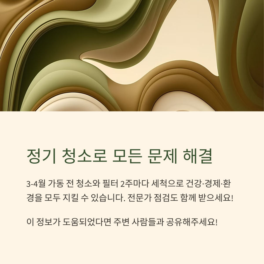 에어컨 청소는 우리 가족의 건강과 경제적 절약, 그리고 환경 보호까지 동시에 실현하는 **일석삼조의 효과**가 있답니다.