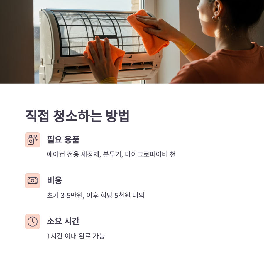 여러분의 상황에 맞는 최적의 선택으로 깨끗한 에어컨과 함께 시원한 여름을 보내시길 바랍니다!