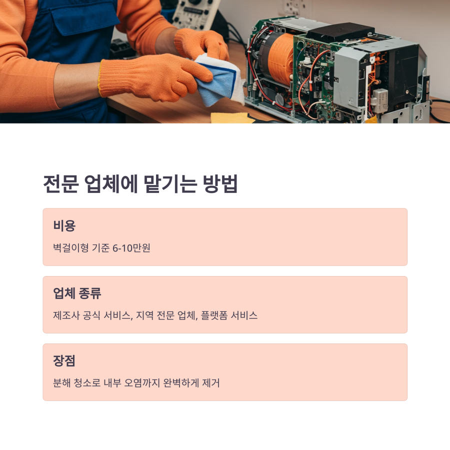 직접 청소하는 것이 부담스럽거나 시간이 없으신 분들은 전문 업체를 이용하는 것도 좋은 방법입니다. 전문가들은 특수 장비와 기술로 보다 깊숙이 청소가 가능하며, 에어컨 상태도 함께 체크해줍니다.