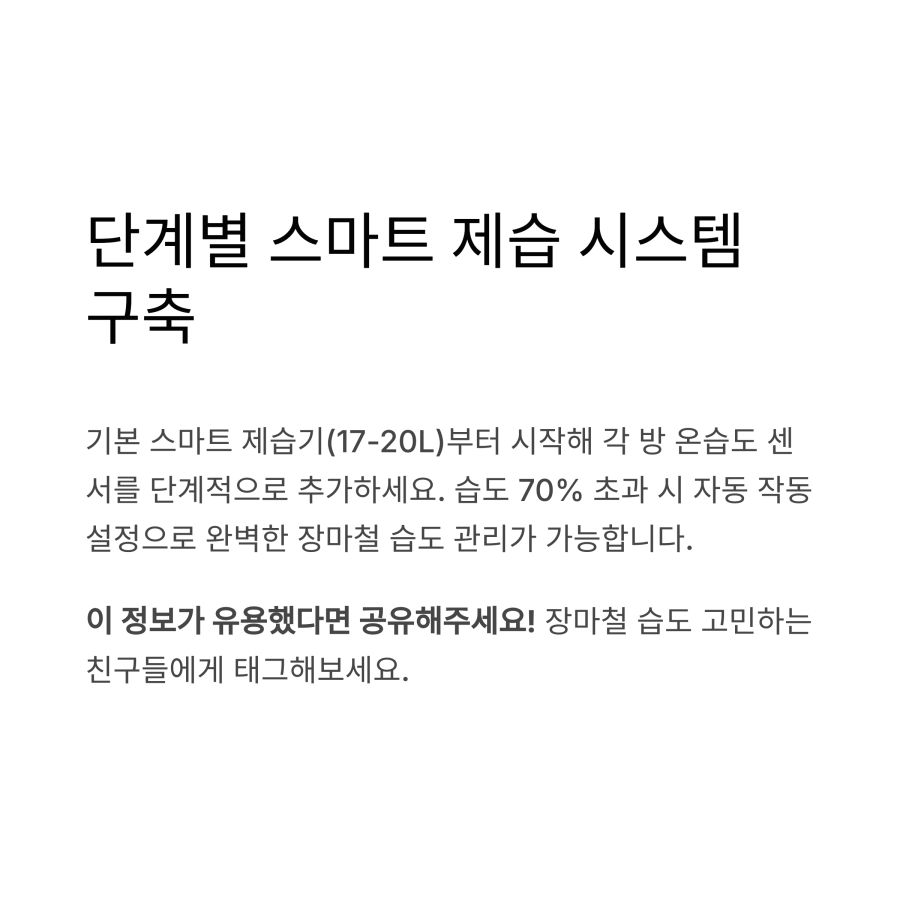 우선 스마트 기능이 탑재된 제습기부터 시작해보는 것을 추천해요.