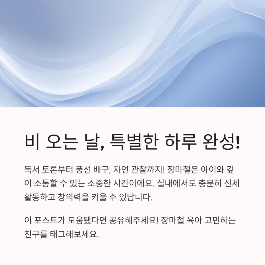 오늘 소개해드린 다양한 놀이 방법으로 비 오는 날도 즐겁게 보내시길 바랍니다!