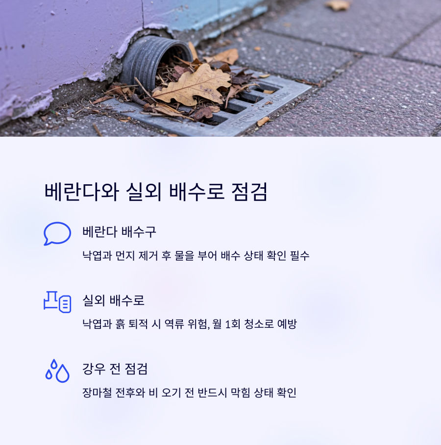 🔍 실외 배수로 관리 팁