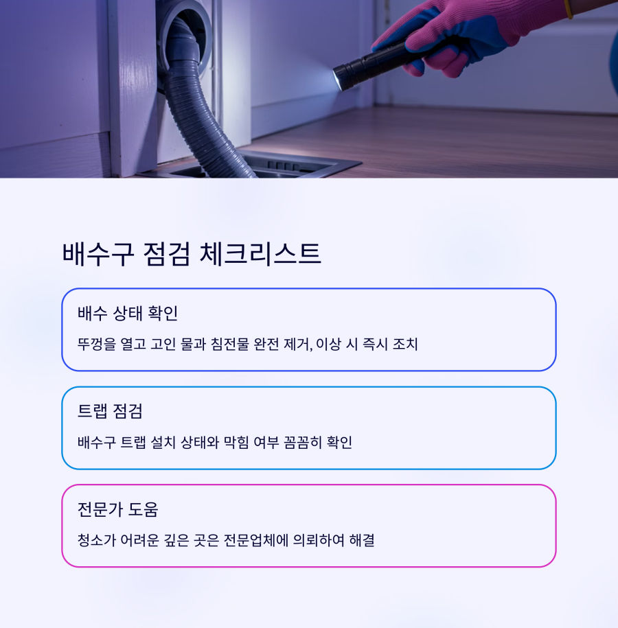 아파트나 공동주택의 경우 관리사무소에 문의하여 전체 배수 시스템 점검을 요청하는 것도 좋은 방법이에요.