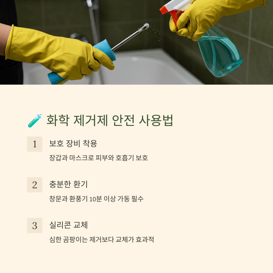 하지만 화학 제품 사용 시 반드시 장갑을 착용하고 환기를 충분히 해야 해요.