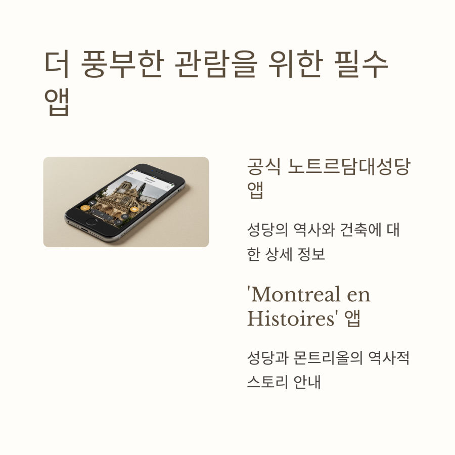 몬트리올 여행 준비 중이라면, 노트르담대성당 공식 앱을 다운로드하는 것도 좋은 방법입니다.