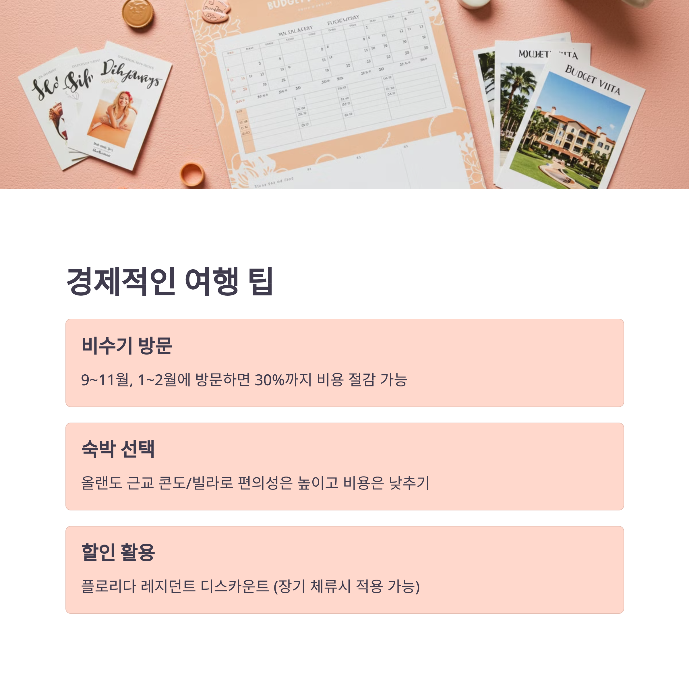 플로리다 여행은 비수기(9월~11월, 1월~2월)에 방문하면 숙소와 항공권을 저렴하게 이용할 수 있어요.