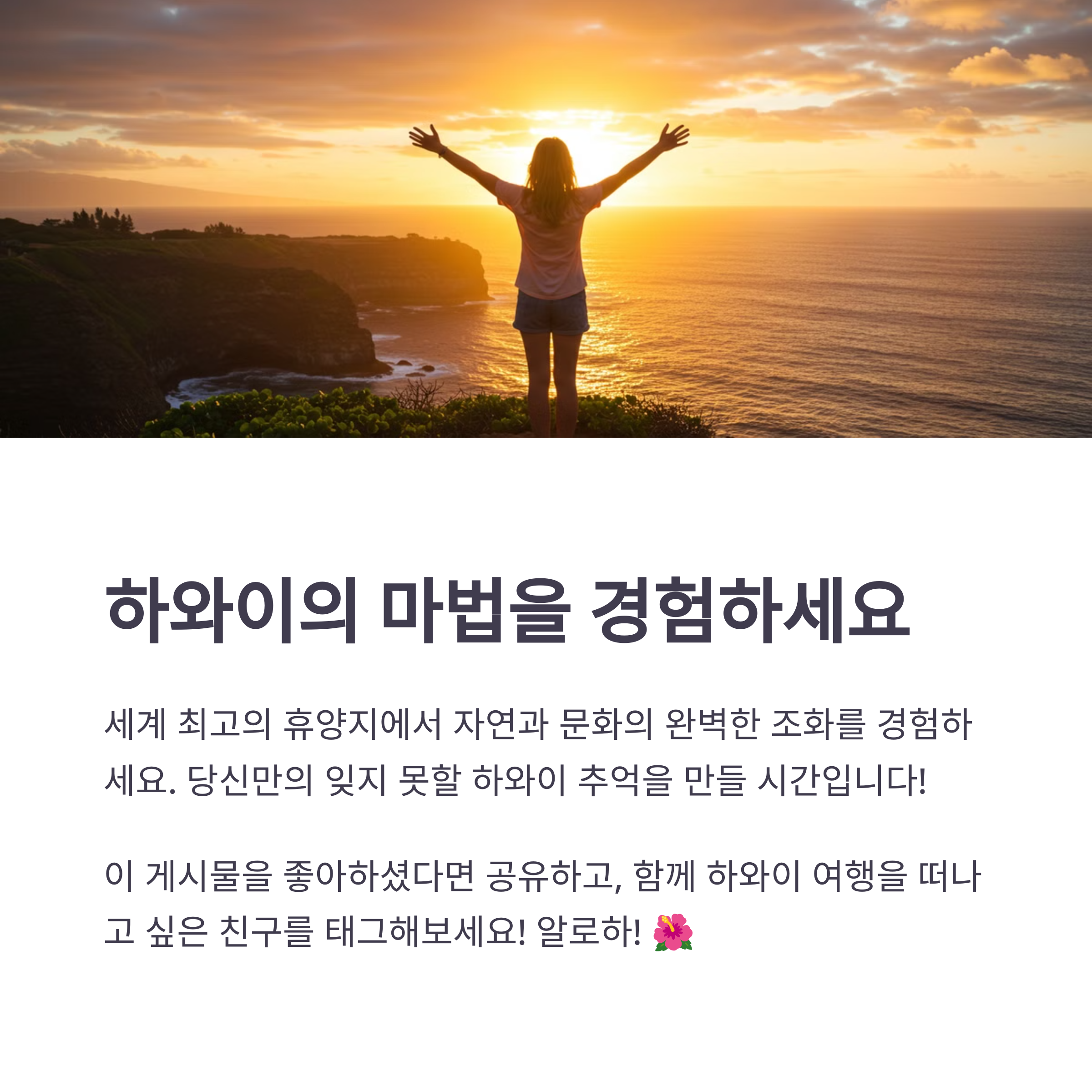 지금까지 하와이로 떠나는 북미 감성 자연여행에 대해 알아봤어요. 하와이는 단순한 휴양지를 넘어 다채로운 자연과 문화를 경험할 수 있는 특별한 여행지랍니다. 여러분도 하와이에서 잊지 못할 추억을 만들어보세요! 🌈