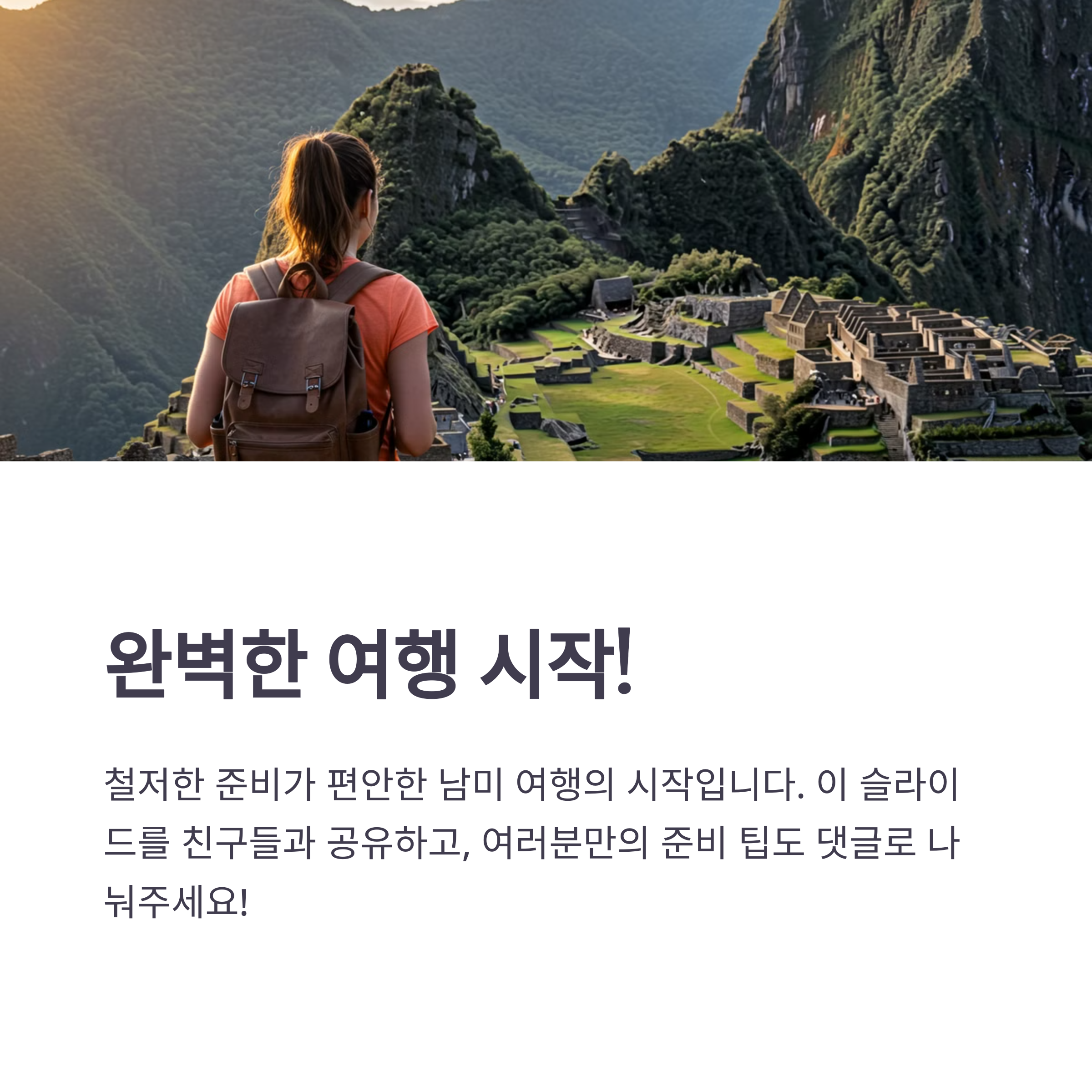 혹시 중남미 여행 준비에 관해 더 궁금한 점이 있으시면 언제든지 댓글로 물어봐 주세요. 함께 완벽한 여행을 준비해봐요! 🌈