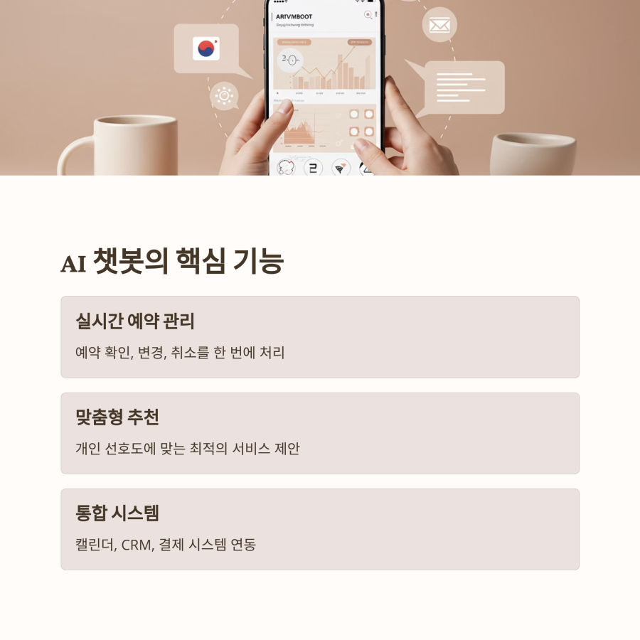 AI 챗봇으로 예약하면 무엇이 좋을까요? 가장 큰 장점은 24시간 언제든지 예약이 가능하다는 점이에요. 전화 연결을 기다리거나 영업시간을 신경 쓸 필요가 없어요.
